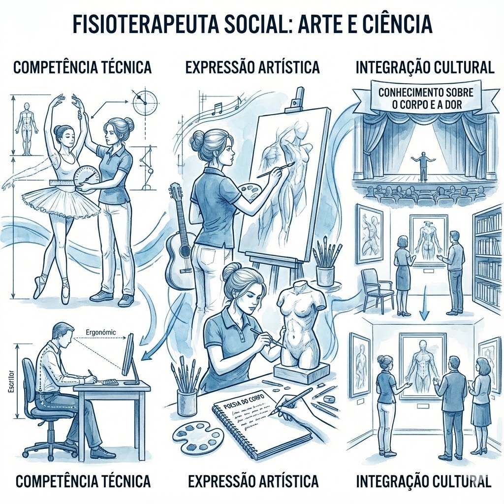 O fisioterapeuta social distingue-se por integrar as humanidades na sua identidade. Da mesma forma que possui a competência técnica para reabilitar um bailarino ou analisar a ergonomia de um escritor, ele tem a sensibilidade para ser, ele próprio, um criador.