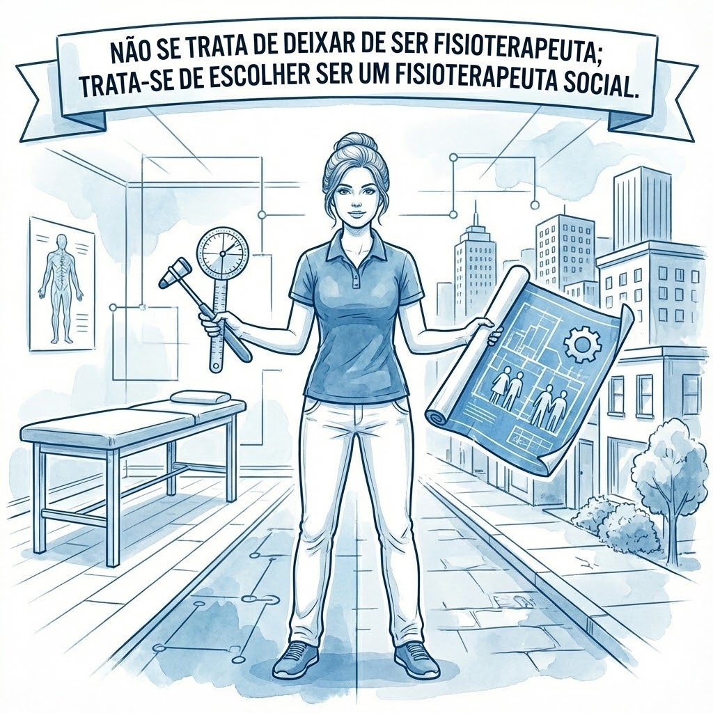 O fisioterapeuta continua a ser um especialista em saúde, mas ao adotar esta perspectiva, escolhe comportar-se como um agente social. Ou seja, ele não deixa de ser clínico, mas transcende a técnica para assumir um compromisso ativo com a transformação da sociedade.